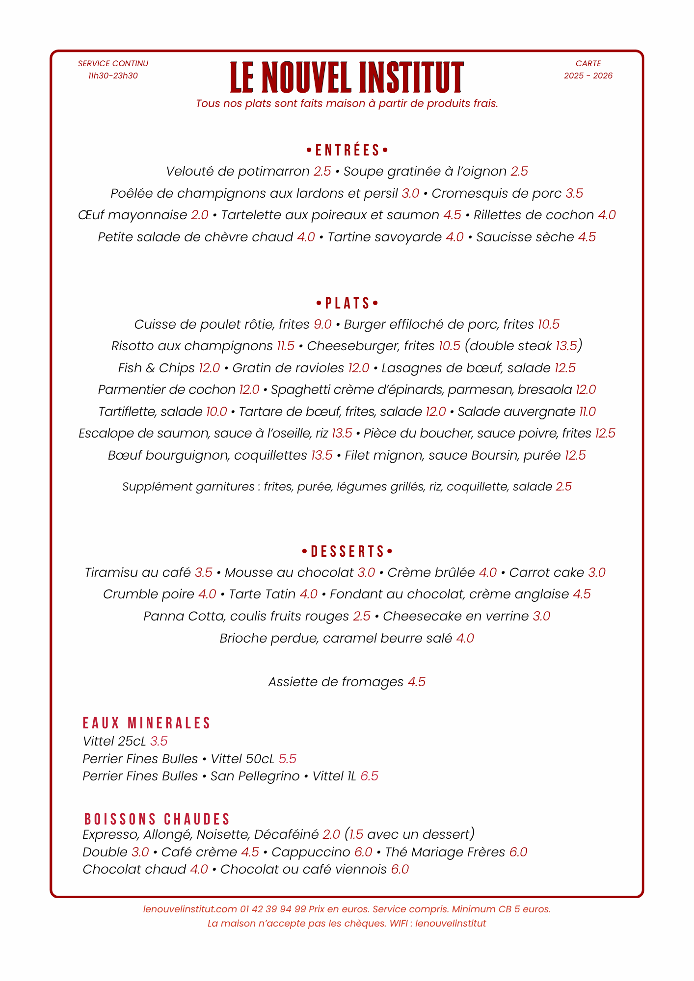 Le Nouvel Institut s’inscrit comme une vraie brasserie de quartier où tout le monde trouve son compte.