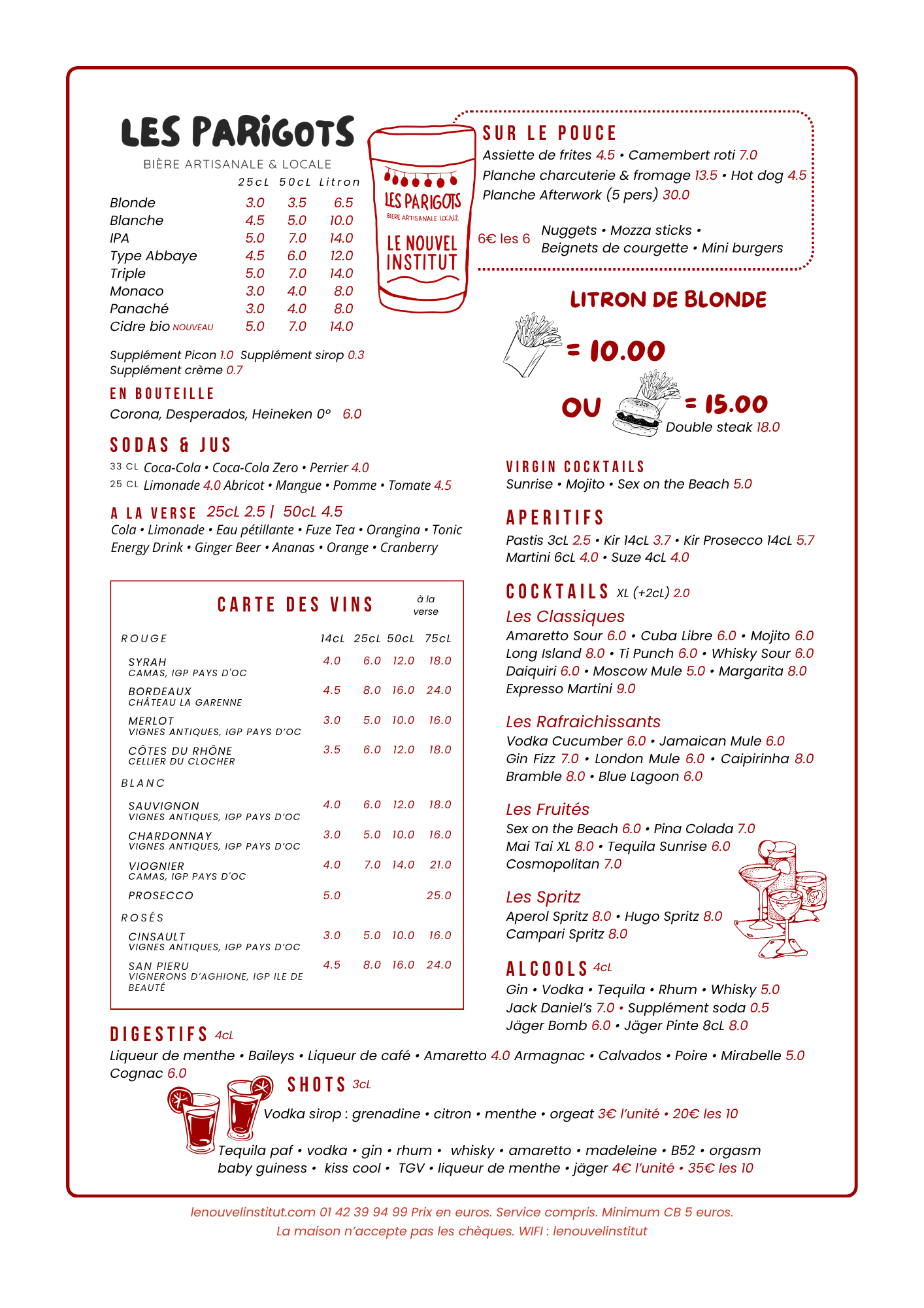 pinte de blonde 3.5€ / assiette de frites maison &mayonnaise maison 4.5€ / nouvelle formule LITRON bière blonde + FRITES : 10€